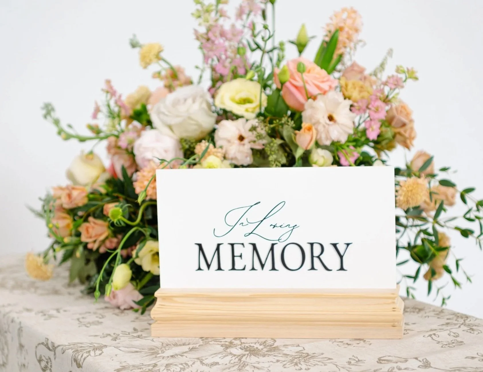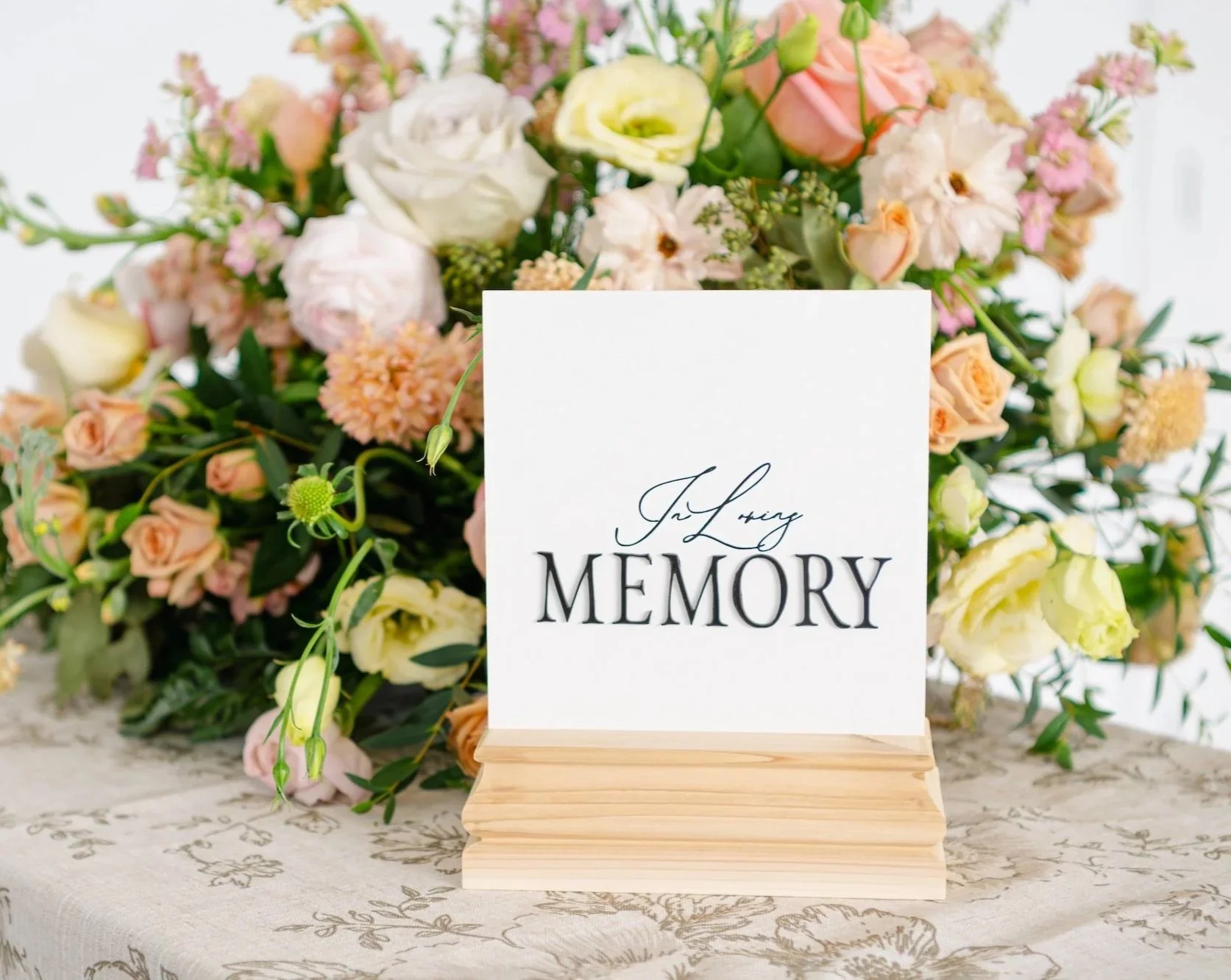 Up to 2 Landscape Small signs (“Please Sign Our Guestbook,” “Gifts & Cards,” “In Loving Memory,” “Please Induldge”)