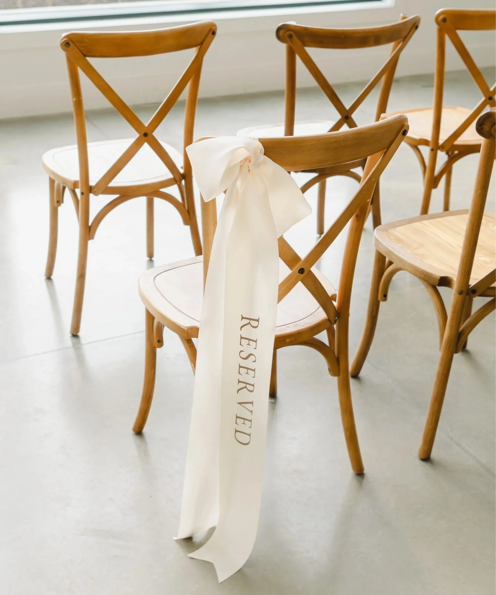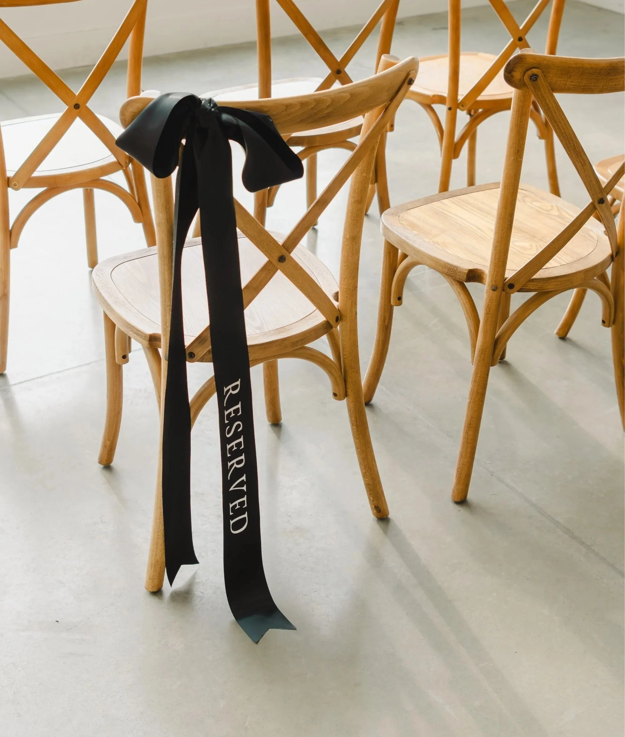 SET OF SIX —-Available in 1) Ivory Ribbon- Black Text 2) Black Ribbon- White Text 3) Ivory Ribbon- Champagne Text