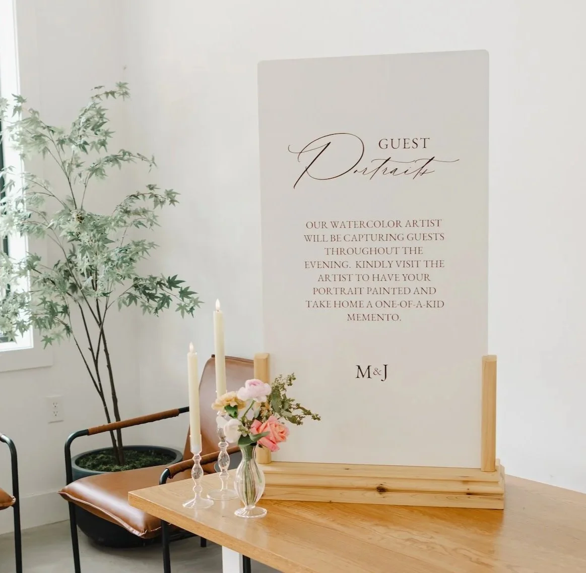 Cedar display base with panel insert best used for photo-booth instructions, extensive cocktail menu, directional signage, order of events, or to highlight a special guest experience.